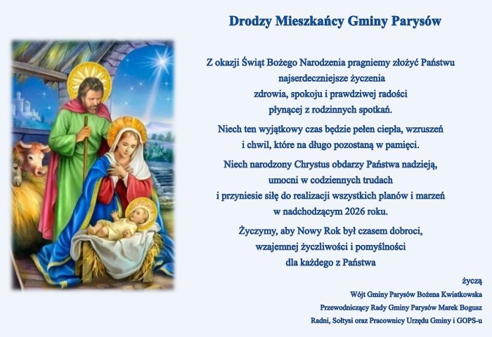 Życzenia Bożonarodzeniowe dla mieszkańców Gminy Parysów