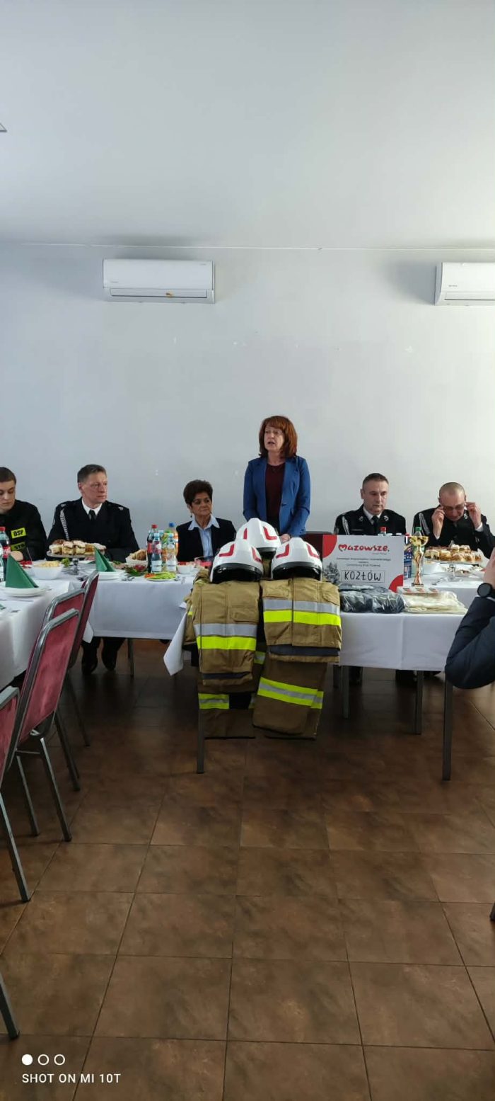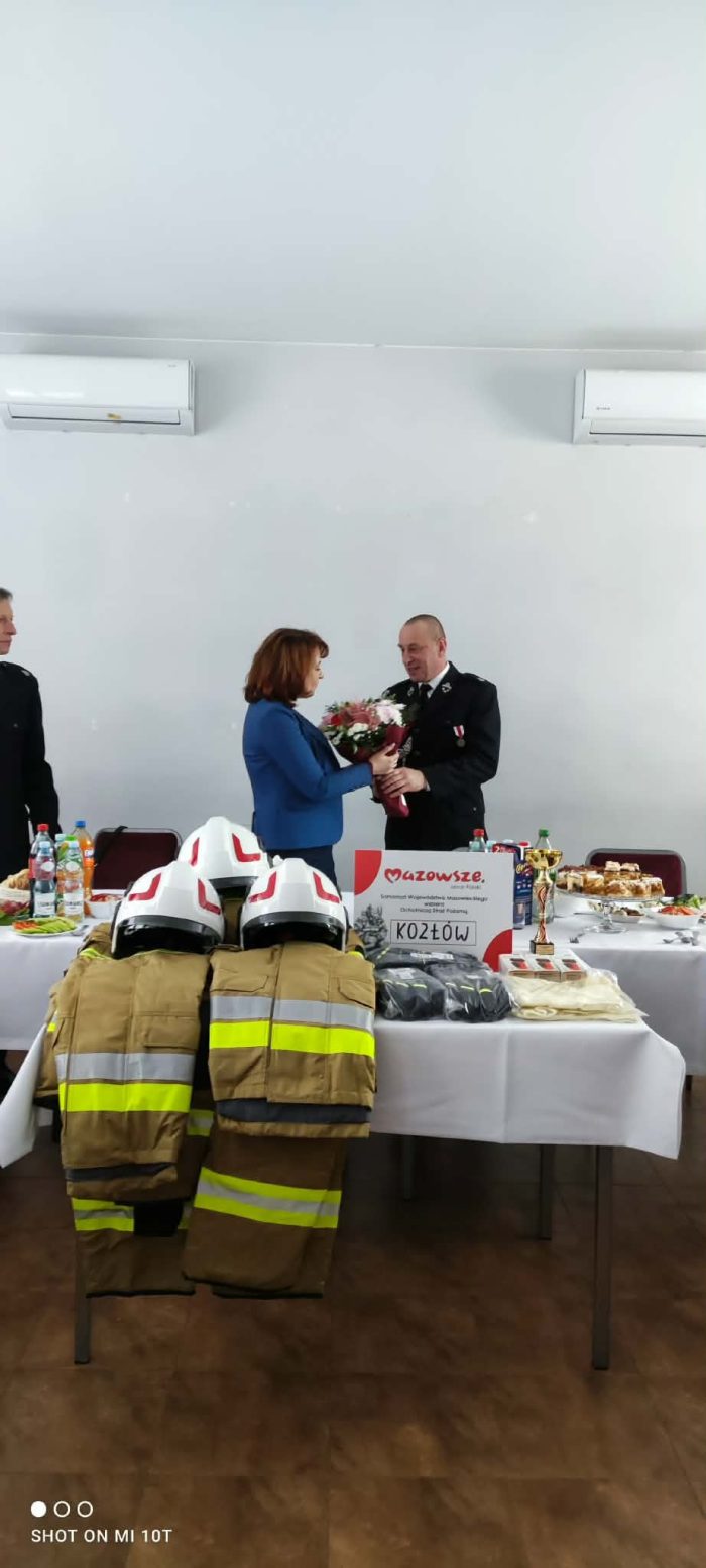 Ważnym punktem spotkania było przekazanie przez Panią Marszałek trzech kompletów specjalistycznych ubrań ochronnych typu Nomex, za co druhowie złożyli serdeczne podziękowania.