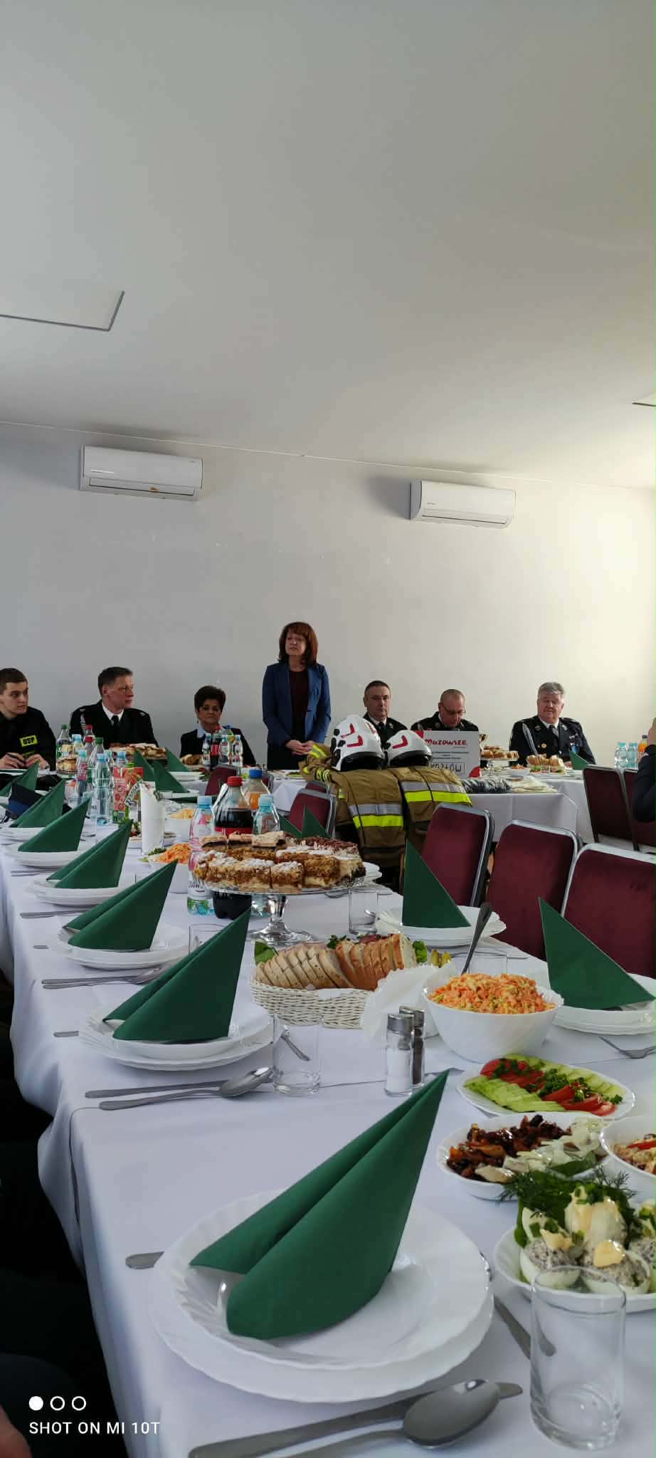 Ważnym punktem spotkania było przekazanie przez Panią Marszałek trzech kompletów specjalistycznych ubrań ochronnych typu Nomex, za co druhowie złożyli serdeczne podziękowania.